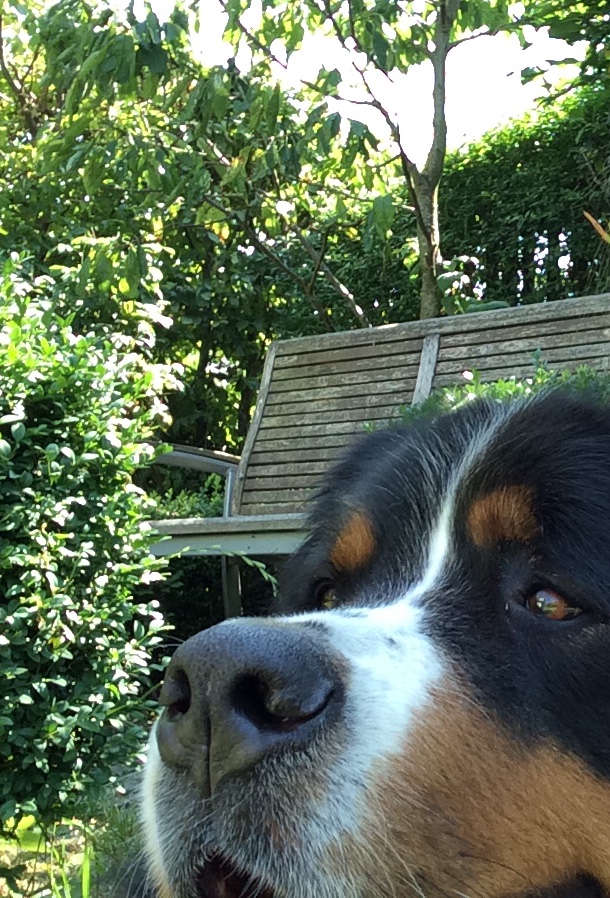 Xaver vor der Gartenbank
